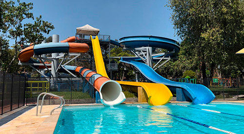 Water park adjacent to the local airport, featuring a wave pool, slides for kids and adults, a semi-Olympic pool, and a children's pool.